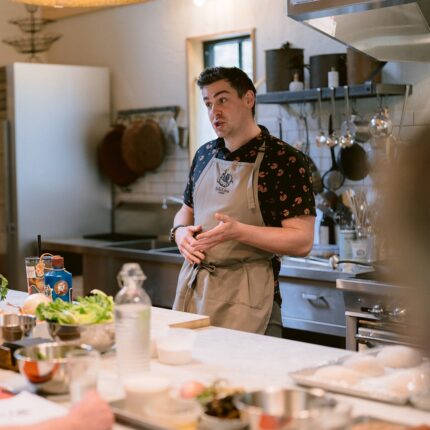 Nicco Muratore was born and raised in Boston, where he got his start cooking at the restaurants inside the historic Fenway Park. He was introduced to Middle Eastern cuisine at Oleana Restaurant and Sofra, before joining The Montagu Kitchen in London’s Grand Hyatt Hotel and then Danny Meyer’s historic Union Square Cafe in New York. He returned to Boston to join chef Steven Postal’s team at the newly opened Commonwealth, where he spent five years working his way from Sous Chef to Chef de Cuisine. We know Nicco from his work at Mamnoon, in Seattle, where he became Chef de Cuisine in 2019. Since then he’s taken the menu to new heights, and in 2022 took over the role of Mama Group Culinary Director, overseeing the culinary teams at all of the Mamnoon-related restaurants. In 2024, he branched out from restaurant work and can now be found in the community teaching classes on fermentation and koji, preservation, and cooking with local foods. Outside of the kitchen, you can find Nicco gardening, hiking, skiing, or in the woods hunting for mushrooms.